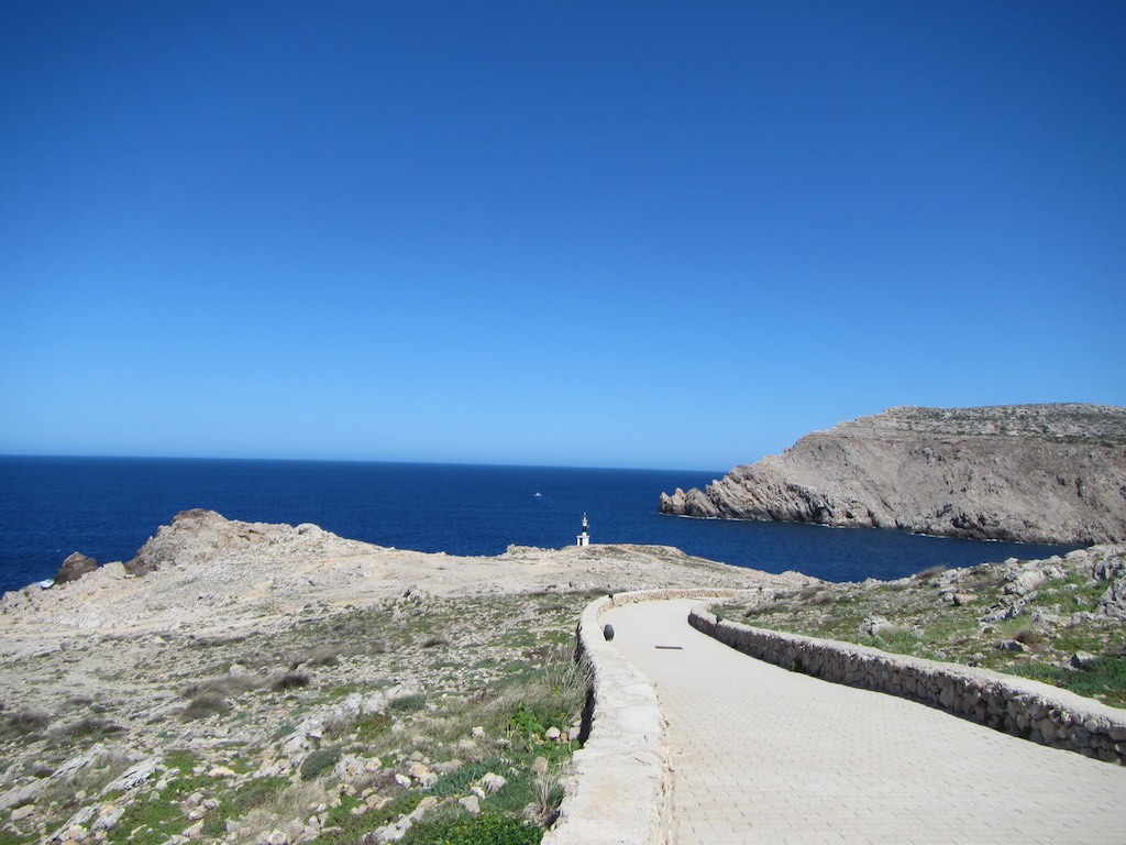 Wirklich schön hier. Gibt es den hier einen Laden? Ja, aber der macht erst im Mai auf. Hmm. War wohl nix mit der Aufstockung der Vorräte. Setzten wir uns also in ein Kaffee und geniessen den blauen Himmel. Ohne Wind brennt die Sonne ja richtig. Wurde auch Zeit. Weiter ziehen wir. Wir haben ja, leider, nur Heute Zeit, um uns das schöne Dorf anzuschauen. Der Wachturm müssen wir uns schon ansehen, der uns so schön den Weg gezeigt hat. Ganz vorne am Cap de Fornells muss zuerst der kleine Leuchtturm angeschaut werden.