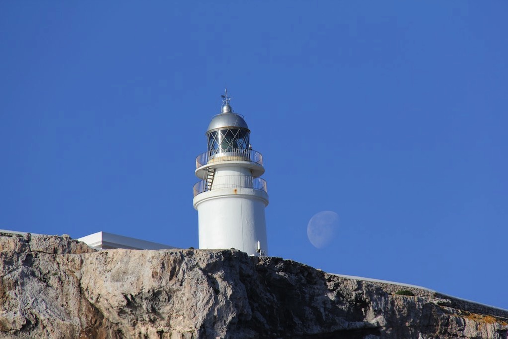 Der Mond sitzt gerade am Cap neben dem Leuchtturm, als wir vorbei kommen. Sieht gewaltig aus.