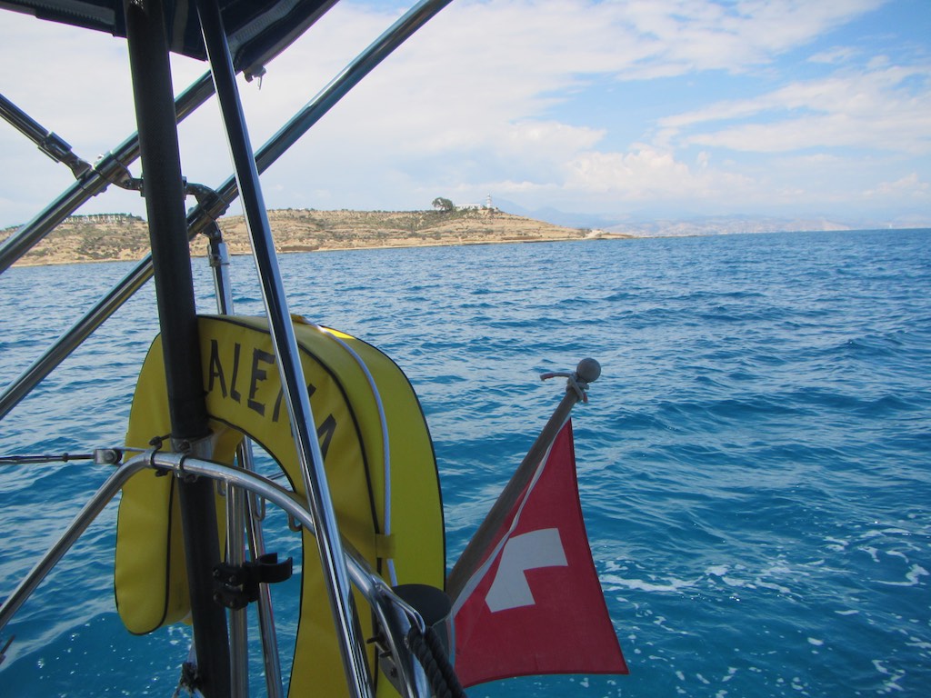 Geschlafen? Schlecht, der Hals hat die ganze Nacht keine Ruhe gegeben. Nur ein paar Fisherman’s Friend helfen da. Duschen, steht auch noch auf dem Plan. Alles zusammenpacken und zu den grosszügigen Räumen. Passt wieder einmal perfekt. Dann noch etwas Leim für die restlichen Teppiche für den Schrank kaufen und schon geht das basteln los. Der Wind ist gar ruhig, so entere ich zuerst den Mast. Am Seemansstuhl das neue Teil. Alles perfekt. Einen kurzen Halt beim Radar und ein paar Kabelbinder ersetzten. Oben angekommen, ich kann’s gar nicht recht sehen, wo ist meine Brille? Ich hatte sie doch um? Weg! Auf dem Deck? Nichts. Weg und ins Wasser, Sch……. Irgendwie kriege ich alles über den Tastsinn hin und kann noch ein paar Bilder schiessen.