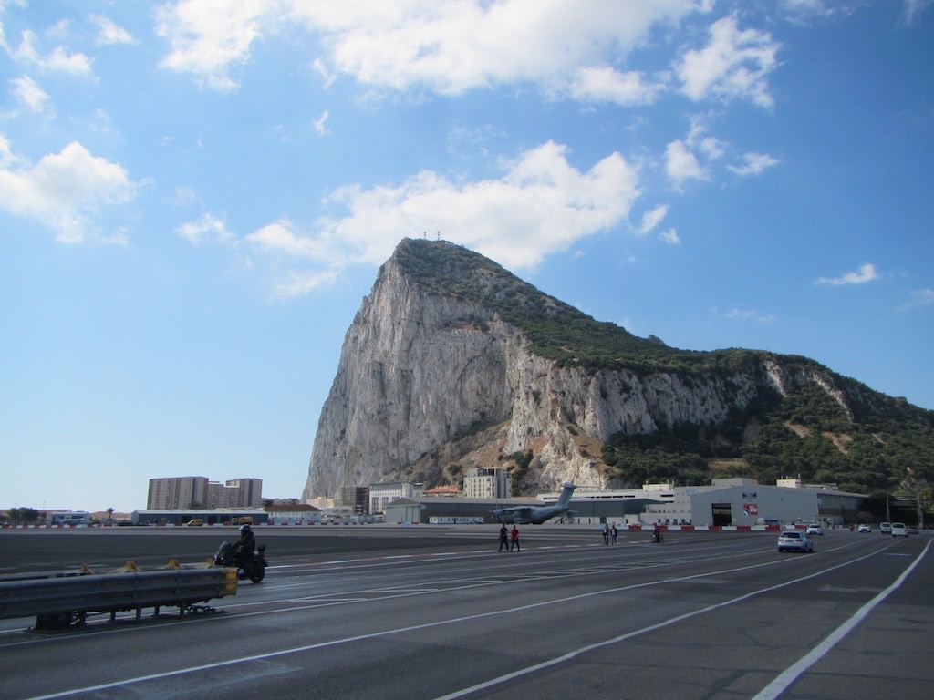 Dienstag, 12 Juni, Gibraltar wir kommen! Vor lauter Ruhe, haben wir verschlafen. Kein Schwell, kein Wind und kein Nachbar der uns hätte wecken können. Aber wir wollen doch auf den Felsen! Die Pässe nicht vergessen und Wasser für den Abstieg. Dann ab zur Grenze. Zoll, Pass, Schweizer? Kein Problem und schon stehen wir in England. Vor uns der Flughafen, den wir nun überlaufen.