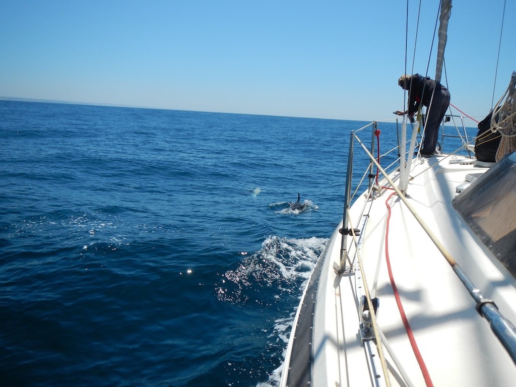 Die gewöhnlichen Delfine haben sichtlich Spass und wir stören sie scheinbar nicht. Dazu sind sie vermutlich auf der gleichen Zugbahn wie wir. Am Schluss geben sie alles und scheinen sich zu Verabschieden. Tschau ihr lieben Gesellen.