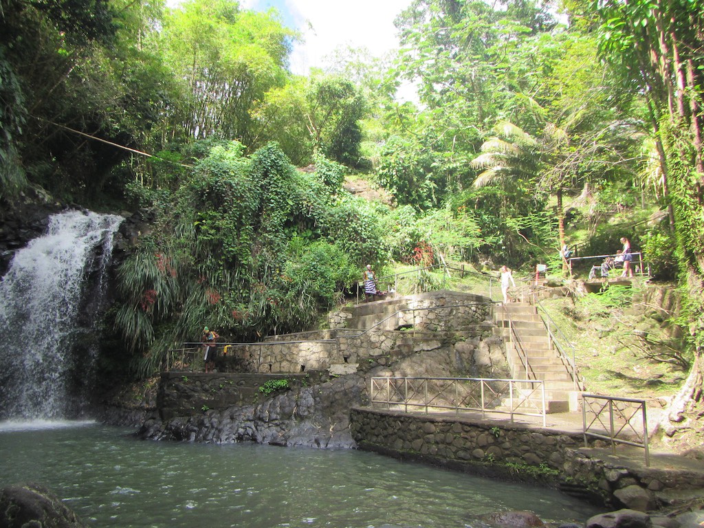 Zmorge im Resti, warten aber bis die zwei übermüdeten auftauchen. Kein Problem. Es wird schnell spät und der bereits bestellte Taxi fährt schon vor. Wir machen eine Wasserfall-Tour. Der Fahrer hat viel von seinem Land zu erzählen. Auch bekannte Häuser dürfen dabei natürlich nicht fehlen. So stehen wir bald am Eingang zum Annandale Waterfall. Der geteerte Weg erleichtert es uns Gaby das Ganze auch zu zeigen. Wirklich schön gemacht und rundherum wunderschöne Pflanzen, die in allen Farben strahlen.