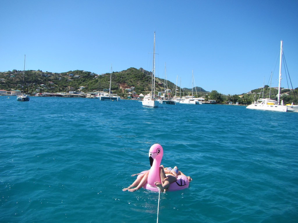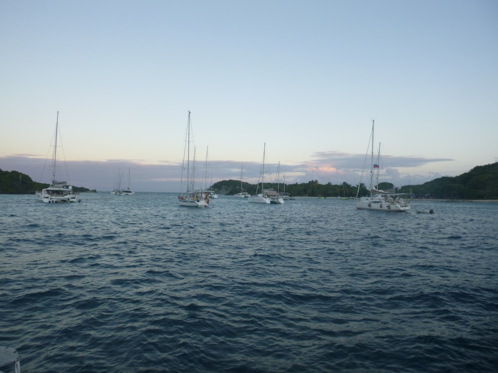 Die Flucherei beginnt. Die wellen werden immer grösser, der Wind dreht immer mehr auf die Nase und der Tag neigt sich langsam zu Ende. Super! Gleich am ersten Tag so weit und so lang, dazu noch in der Nacht ankommen und erst noch Ankern. Was soll’s. Alles halb so schlimm. Die Girls machen gut mit und so sind wir bald im riesigen Ankerfeld von der Tyrrel Bay auf Carriacou und lassen den Anker auf 10 Meter in den Sand fallen. Hunger, grossen Hunger. Jasmin macht schon mal das Wasser heiss und öffnet ein paar Packs Tortellini. Etwas rote Sauce dazu, lecker! Bald sind wir im Bett. War für alle etwas zu lange und zu anstrengend. Aber jetzt sind wir oben und die weiteren Ankerplätze sind nun nur noch ein paar Meilen auseinander.