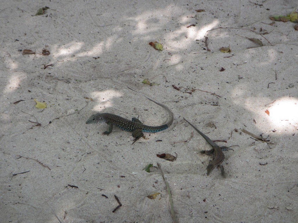 Wir legen uns in den Schatten und schauen den neugierigen Lizards zu. Als sie Gaby doch etwas zu nahe kommen, haue ich kurz auf den Boden, und weg sind sie, für einen Moment jedenfalls 😉