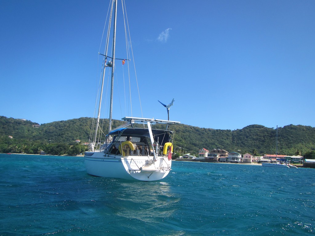Das Formular ausfüllen, ein paar EC’s bezahlen und schon gurke ich wieder zurück zur Ulalena. Alles auf? Fast, also Anker hoch und Segel setzen. Die paar Meilen nach Union Island sind angenehm, trotz der zum Teil über 20 Knoten Wind. Diesmal helfen sie und kurz nach Mittag laufen wir in der Bucht von Clifton Harbour ein.