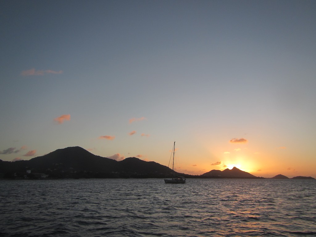 Früh sind wir, die Alten, am nächsten Morgen schon auf. Machen das Boot fertig und ich ziehe den Anker schon um halb Acht hoch. Wind hat es zur genüge und die Südpassage durchs Riff soll mehr als genug tief und breit sein. So setzte ich etwas Genua und mit über fünf Knoten schaukeln wir gegen Union Island zu. Wirklich schön und vor allem schnell. Kurz nach acht werfe ich den Pickel in der grossen Lagune von Clifton in Wasser und rudere mit der Banane zum Steg. Ausklarieren. Es ist schon Freitag und wie genau die Behörden am Wochenende offen haben, ist nicht ganz genau angegeben. Eigentlich ist alles geschlossen oder doch nicht? Wir gehen kein Risiko ein und so lasse ich alle Pässe abstempeln. So, raus sind wir also. Zurück beim Boot, räkelt sich die Jungmannschaft aus dem Tiefschlaf und wundert sich über den jetzigen Ankerplatz. Sind aber gleich wieder weg. Anker auf und weil der Wind immer noch Super stösst, segeln wir gemütlich nach Carriacou. Wow, wie das “fätzt”! Weil etwas viel Wind angesagt ist, wollen wir den recht geschützten Ankerplatz vor Hillsborough testen. Nur ein paar Segler sind hier und so hat es mehr als genug Platz.