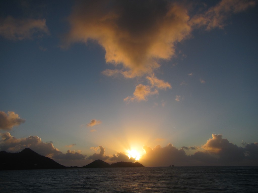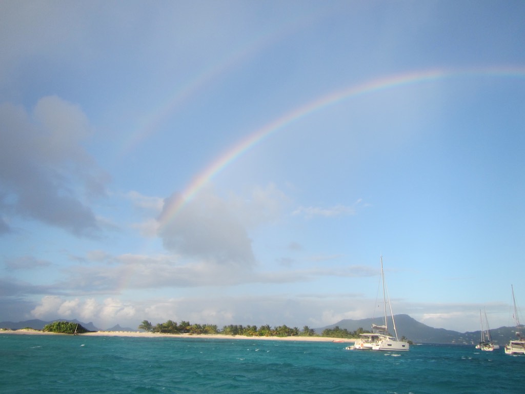 Bald haben wir die kleine Insel umrundet und stechen von Norden her in die Tobago Cays ein. Neben Petit Bateau finden wir einen schönen Ankerplatz und schauen dem abziehenden Wetter zu. Schon wieder blau.