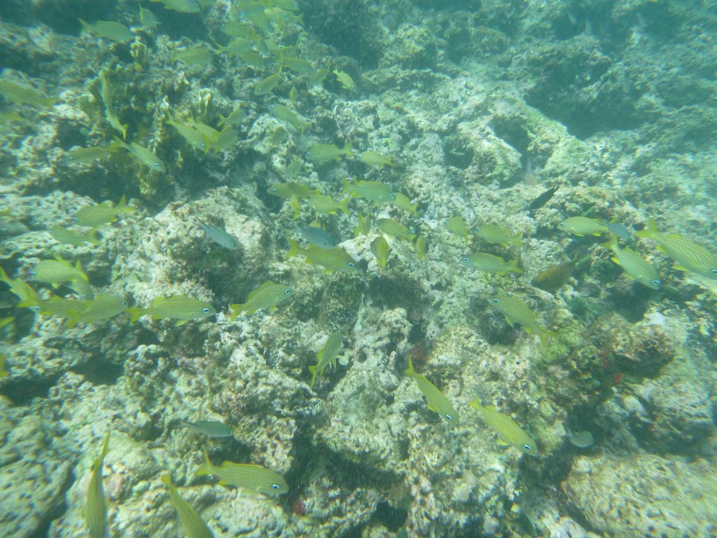 Auch unter Wasser sieht es paradiesisch aus. Immer noch, doch man sieht schon, das die Korallen in den letzte 27 Jahren mehr als gelitten haben. Dafür hat es Fische in Hülle und Fülle. Ich sehe sogar noch eine kleine Schildkröte!