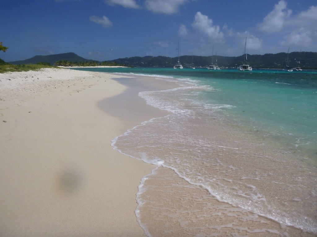 Eigentlich wollen wir nur kurz zur Sandy Island am nächsten Morgen. Können aber dem Charme dieser kleinen Insel, gerade mal eine Meile südlicher von Hillsborough, nicht widerstehen. Zumal es genügend freie Bojen hat. Schnorcheln und spazieren gehen am Strand. Mehr brauchen wir wirklich nicht.