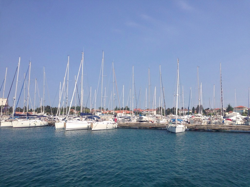 In Piran läuft alles prima und so haben wir noch genügend Zeit für die Sprayhood und das Bimini. Autopilot an und ran an den Aufbau. Ohne gefluche geht es natürlich nie und auch die neu geflickten und gerichteten Nähte und Reissverschlüsse passen perfekt. Kaum Zeit zum verschnaufen, sind wir schon bald in Umag. Weiter können und wollen wir Heute nicht. Der Zoll und Hafenmeister sind bei der Marina schon weg, also ab zum Zollpier. Einklarieren geht ohne Probleme aber der Hafenmeister hat schon Feierabend. Das könnt ihr auch morgen noch erledigen. Wow freundlich und so verzeihen wir uns in die Marina. Jetzt nur keinen Fehler, denn ich bin nervlich schon arg angeschlagen. Rums sind wir am Steg. Alles belegen und schon sind wir auf dem Weg in die Stadt. Das muss einfach gefeiert werden.