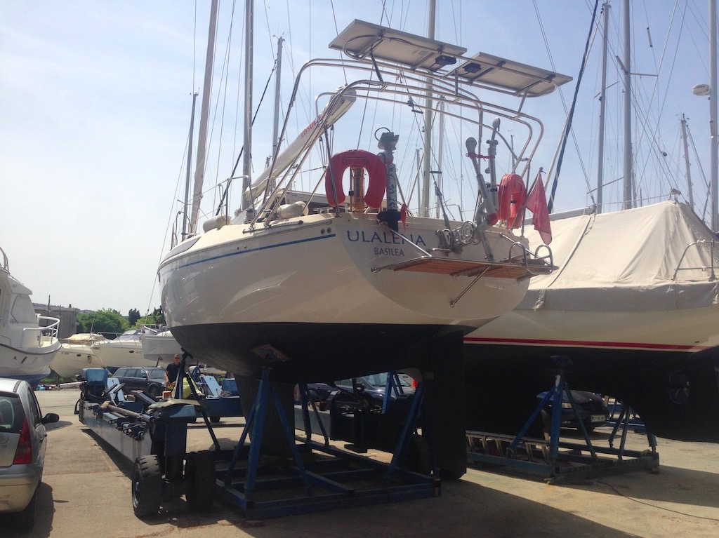 Kurz noch die letzten Stellen mit Antifouling bestreichen und schon ist die Büx im Wasser. Fender raus und schnell unter Deck. Was machen die Borddurchgänge? Wow, cool. Alles trocken. Nichts, aber auch gar nichts ist krumm oder sogar nass. Ich lasse den Motor laufen und hole Gaby ab. Wie bringen wir sie aufs Boot? Einfach fragen und schon reissen sich die Leute um sie und lassen sie zu mir aufs Boot. Motor läuft ohne Probleme. Wasser kommt und auch die Logge funktioniert. Tiefe und Wind ist auch okay. PC hat wieder eine Macke. Ach so, die Tastatur ist ja noch aufgerollt. Und schon läuft schon die Navigation. Können wir? Frage ich Gaby und weg sind wir.