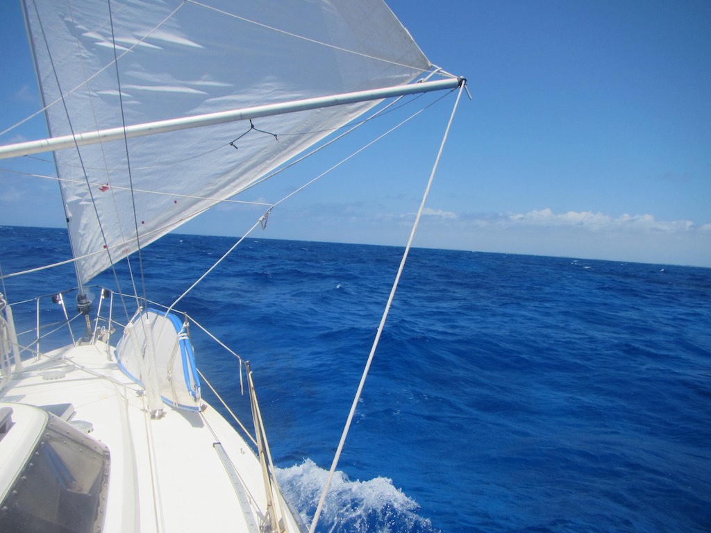 Wir sind mitten, also nördlich davon, in der Mona Passage, die zwischen Puerto Rico und der Dominikanischen Republik ist. Der Tag vergeht im nu und wir sind immer wieder überrascht, wie schnell und doch sehr angenehm wir vorwärts kommen. Im Durchschnitt um die sechs Knoten stehen fast immer auf den Instrumenten. Zum Znacht machen wir es uns im Salon gemütlich. Gaby verkeilt auf dem Sitz, und ich versuche einen kleinen Chabis in die Schüssel zu kriegen. Etwas Mayo, Öl und feine Gewürze aus der Türkei und das Ganze mit dem fein geschnittenen Chabis vermischen. Richtig erfrischend und nahrhaft. Die Sonne verschwindet bald wieder und wir legen uns hin. Gaby im Salon und ich in der Koje. Habe auf dem Atlantik gemerkt, dass auf der Bank im Salon es sehr gefährlich sein kann. Einen grosse Welle und du landest unsanft auf dem Boden. In der Koje kann ich nirgends hinfallen. Was passiert in der Nacht? Nicht viel. Habe zwei Grosse in einiger Entfernung auf dem AIS entdeckt, das war alles was ich zum Zmorge an Gaby zu berichten habe. Das Etmal ist schon wieder besser. Diesmal sind es deren 143 Meilen. Wir haben erst Sonntag Morgen und sind schon sooooo weit. Wir rechnen hoch und kommen somit am Abend oder in der Nacht auf Inagua an. Gut, blöd, schräg. Einlaufen in den Hafen wenn es dunkel ist, sicher nicht. Doch ankern können wir immer davor. Also weiter gas geben, denn diese Nacht nimmt der Wind laut Prognose etwas zu. Wir mampfen Heute regelrecht. Haben beide so richtig Appetit. Am Freitag, hatte ich etwas mühe und gar keinen Hunger. Nach einem Stugi und was Essen, ist der Appetit sofort da. Segel schiften, damit wir nicht zu fest in den Norden abdriften. Für Pitsch halt doch etwas schwierig, denn der Wind kommt genau von Hinten.