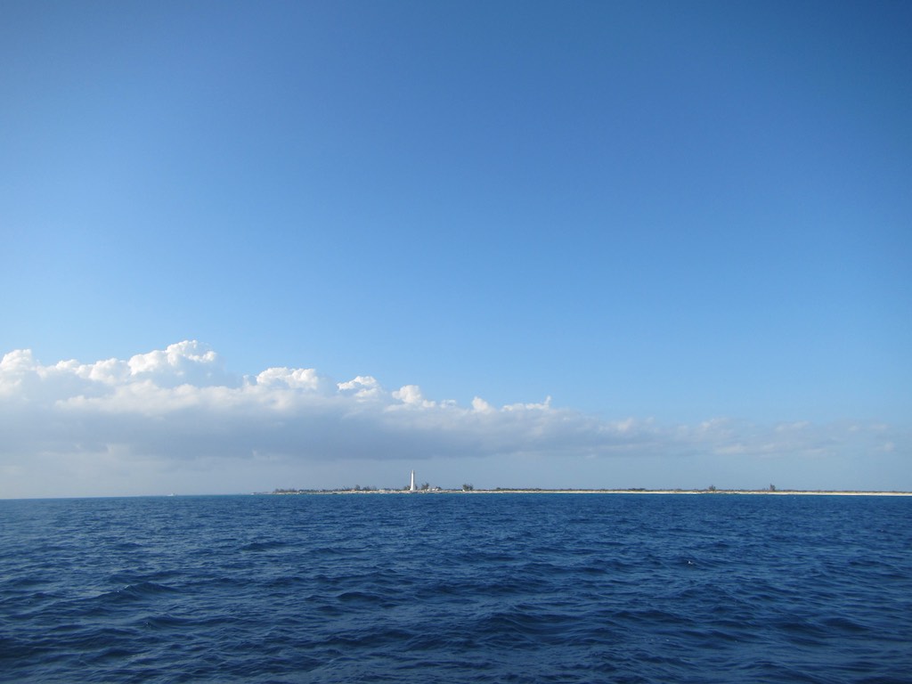 Endlich, endlich sehen wir auch am Horizont das Land. Sind gerade mal drei Meilen davon entfernt. Sooooo flach sind die also! Es ist jetzt ein Uhr Mittag und der Wind nimmt immer mehr ab. Die ausgebaumte Genau zieht nicht mehr so toll und so kommt der Motor zu Hilfe, damit wir wirklich vor Sonnenuntergang im Hafen ankommen. Wollen wir doch! Dann das Riff am Südwest Punkt und schon bald der grosse, grosse Leuchtturm.