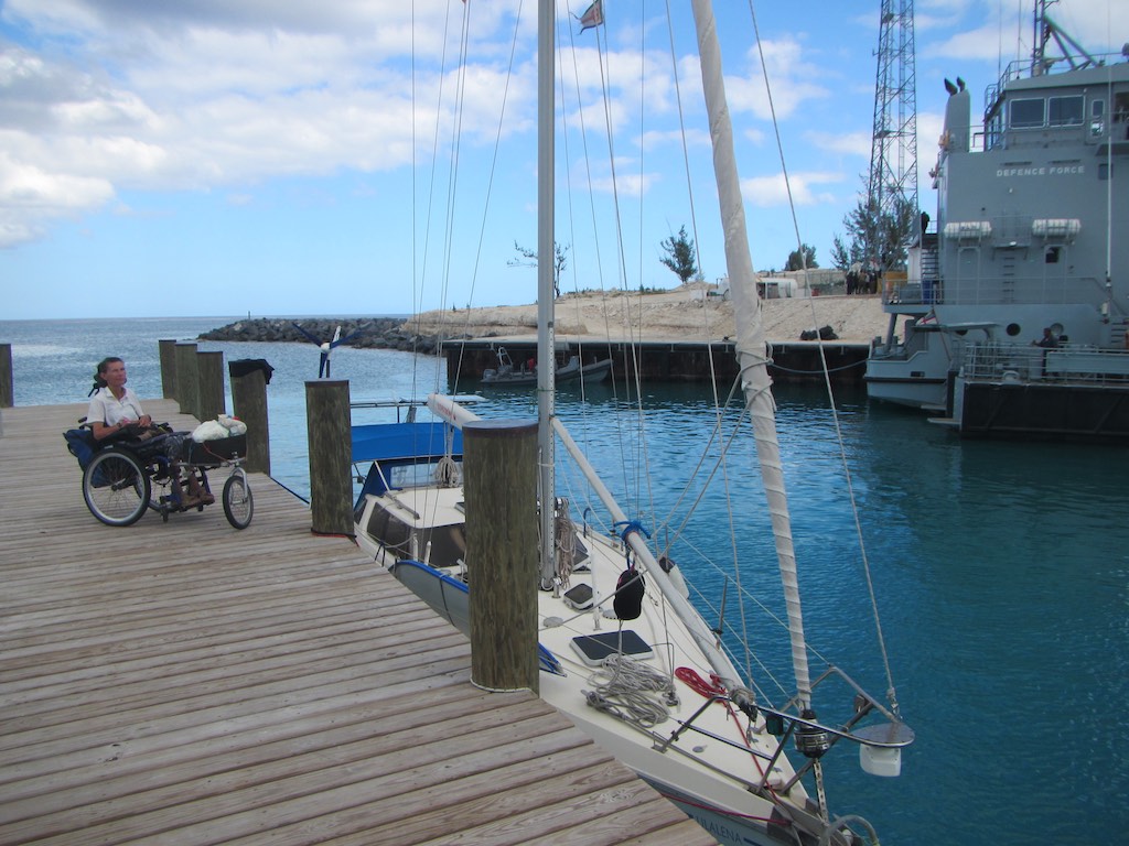 Wir sind in den Bahamas, müssen wir uns immer wieder kneifen beim Essen! Bald, bald sind wir im Bett und auch der Geni der beiden grossen von der Bahamas Defence Force im Hafen können uns nicht mehr stören.