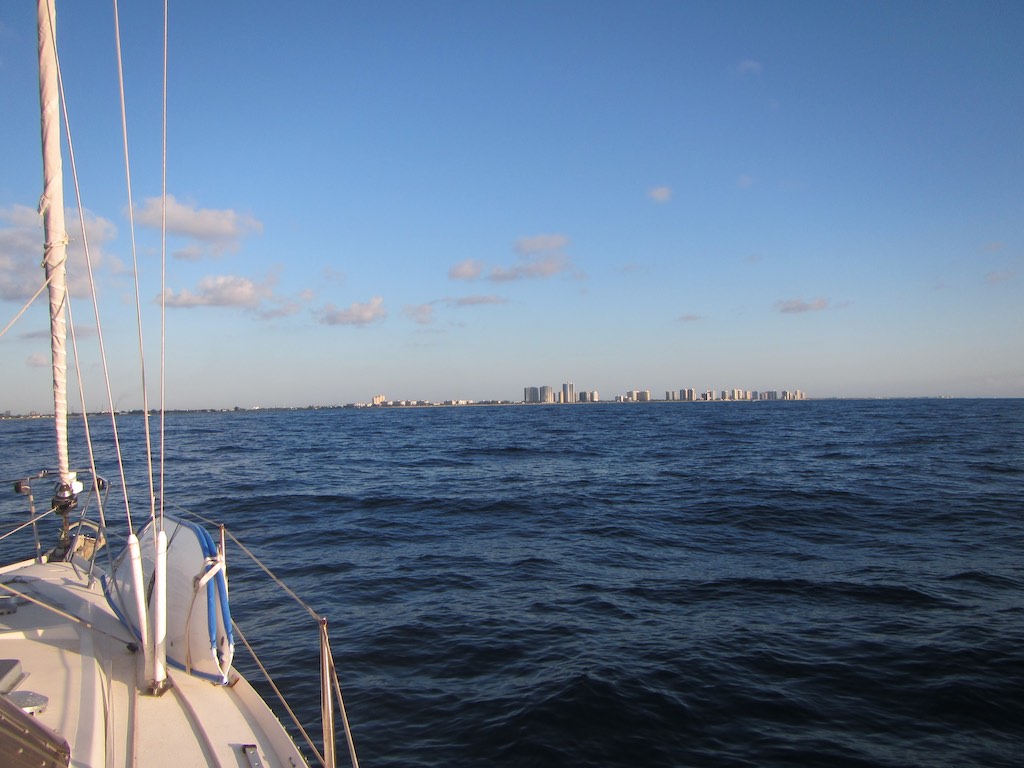 Warum den hier Ankern? Warum nicht gleich los zum Festland? Tja, es sind nur noch knapp 70 Meilen. Zu lang für einen Tag und fast etwas zu kurz für eine Nacht. So wollen wir erst gegen den Abend von hier los, damit wir etwas sehen, wenn wir in West Palm Beach ankommen. So geniessen wir die wunderschöne Ankerbucht und müssen uns immer wieder sagen, es ist vermutlich ein letztes Mal, dass wir diese Farben für eine lange, lange Zeit sehen. Dann endlich, wir zeihen den Anker hoch! Ab nach Hause, also zu unserer Marina, in der wir die Ulalena für einen Monat verlassen und kurz nach Hause fliegen. Der Wind ist fantastisch. Eigentlich, aber dazu kommt noch der Golfstrom, der auch noch schiebt. So setzten wir von Anfang an ein Reff in beide Segel und lassen es ruhig angehen.