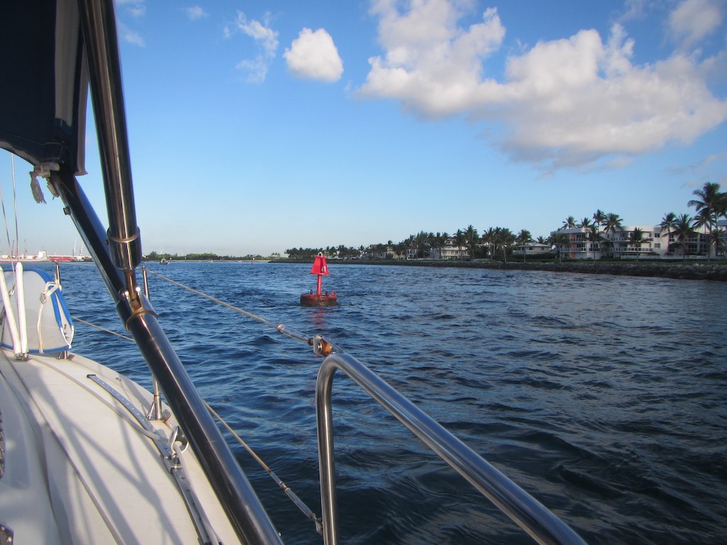 Alles ganz einfach? Überhaupt nicht. Denn eine Handvoll Grosser wartet auf die Strömung, die bald kentern sollte, um in den Hafen einlaufen zu können. Dieses Inlet ist wirklich “busy”, werden aber erstaunlicherweise von einer Schule Delfinen erwartet. Grossartig, alles passt. Wir kommen genau bei Stillwasser im Inlet an, werden nur kurz von einem Lotsenboot auf die Seite beordert, weil gleichzeitig ein Grosser mit uns rein will. Wir sind drin, im Kanal vom Lake Worth.