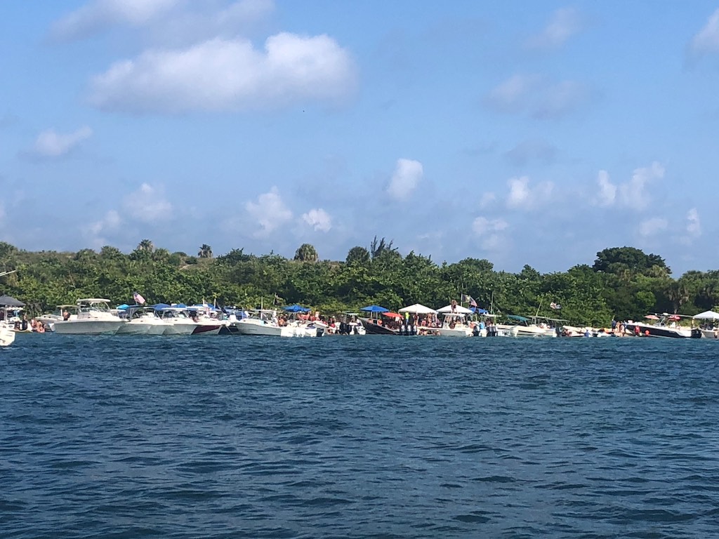 Die Zeit vergeht fast zu schnell. Am Wochenende gibt es noch viel Unterhaltung auf der kleinen Insel direkt gegenüber der Marina. Auf der Peanut Island wird dann heftig gefeiert. Die Musik ist fast immer voll am Anschlag. Verrückt. Die Raser werden auf dem Kanal gnadenlos gejagt, aber die Lärmtäter lassen sie laufen. Komische Welt.
