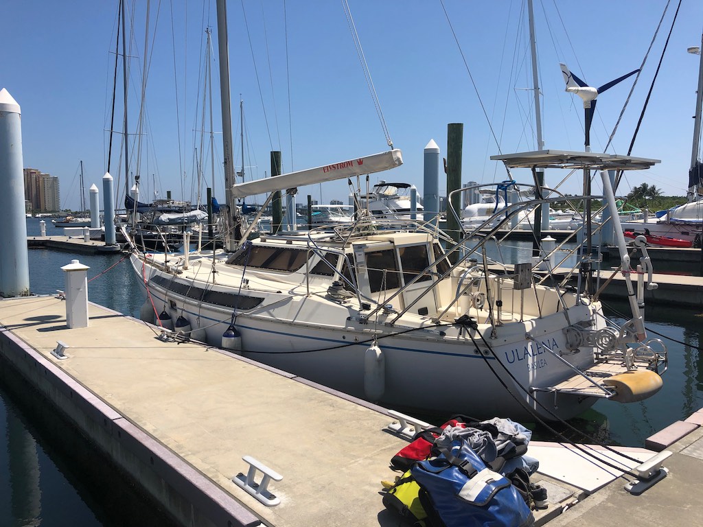 Hunger, durst? Nö, aber müde sind wir. Nur etwas Brot mit einer Banane verdrücken wir und gehen dann schlafen. Es ist wieder mal warm 😉 Am nächsten Tag, es ist schon Mittwoch der 29. Mai, packen wir noch die letzten Dinge für nach Hause zusammen. Die Ulalena ist ja mal wieder Nackt, also ohne Bimini, Sprayhood und auch das Vorsegel ist im Schiffsinnern. Bereit für einen allfälligen Hurrikan. Diese Zeit beginnt in ein paar Tagen und es ist halt ein Muss, alles abzubauen. Fertig, wir können los.