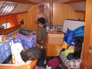 Essen haben wir aber noch nicht gekauft! Wahnsinn. Aber wir sind ja nicht zum ersten Mal auf einem Boot und wissen um die Super Staumöglichkeiten eines Seglers. Das Motto Heute ist, Einkaufen und Verstauen …