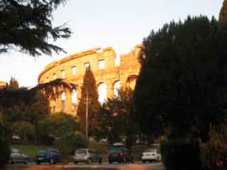 Pula ist halt eine richtige Turistadt. Eigentlich nicht unsere Welt, aber die alten Römerwege/strassen durch die Altstadt und die alten Häuser sehen toll aus. Die tausenden “Badegäste” kommt uns etwas komisch vor. Endlich kommen wir zum Kolosseum. Wow!