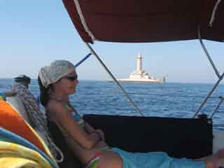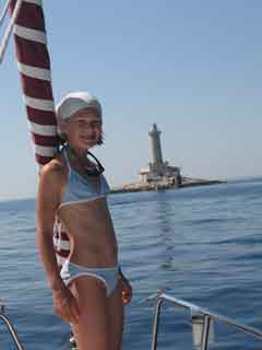 Tschau Leuchtturm. Tschau Istrien. Direkter Kurs nach Unije, der ersten Insel der Kvarner Bucht. Mitten auf dem Weg treffen wir die ersten Delfine an. Wow, genau an diesem besonderen Tag “besuchen” sie Gaby! Wahnsinnig diese wunderschönen Tiere. Die Kids vergessen sogar das “gäussen” und schauen nur den 8-9 Delfine nach. (Leider haben wir die Kamera vergessen)
