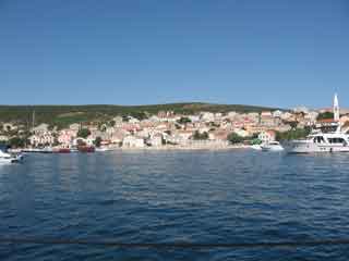 Gaby will Heute an einem besonderen Ort festmachen und in eine Gute Beiz gehen. Laut Hafenführer scheint mir Unije der richtige Ort zu sein. Tatsächlich treffen wir auf eine sehr, sehr schönen Ort. Keine Autos oder Lastwagen. Nur Schiffe, ein Töff und Velos.