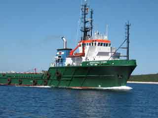 Bei der Ausfahrt sehen wir noch einen Schlepper.