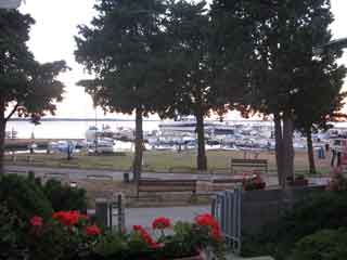 Jetzt haben wir aber richtig Hunger. Rollstuhl auf die Mole und los geht’s. 50 Meter laufen und schon sitzen wir in einem französischen Restaurant. Die Chefin ist eine Französin und hat den Plausch an uns. Auch schenkt sie uns noch zwei Bilder von der Insel mit Unterschrift. Die Aussicht ist idyllisch, die zur Dekoration passt.