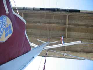 Kleiner und kleiner … Die Kids am Bug und schauen genau. Wir werden, sind nervös, denn gestern war wieder eimal ein Segler steckengeblieben. Aber es reicht locker. Hier der Beweis.