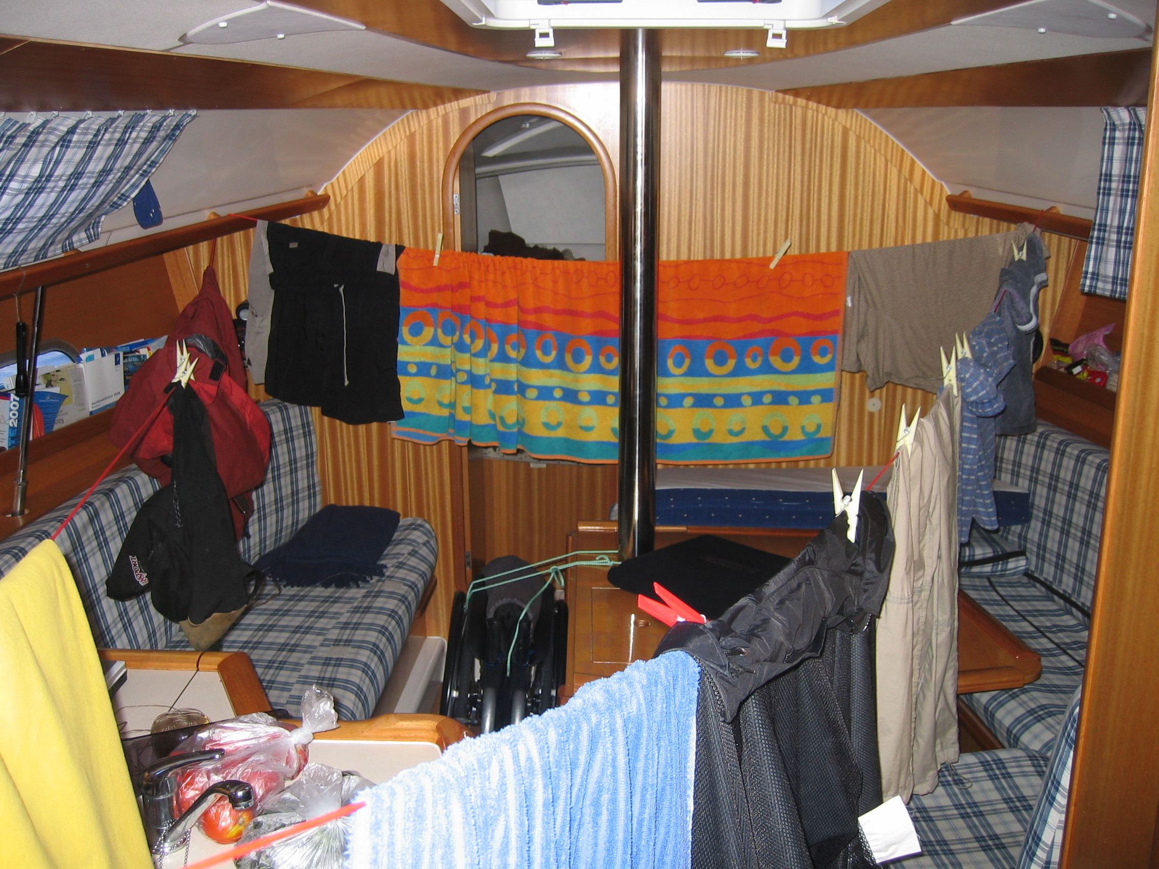 Unsere Kleider und Tücher hatten wir gestern alle noch aufgehängt. Drinnen natürlich. Waren sie trocken? Nein, ganz und gar nicht!